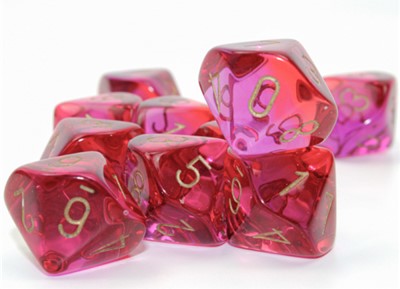 Dobókocka – Chessex Gemini Translucent Red-Violet/gold 10 db-os d10 szett