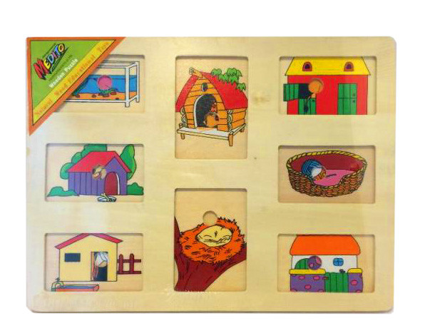 Kép alatt kép elven működő fajáték, melyből megtanulhatják a gyerekek, hogy ki hol lakik.