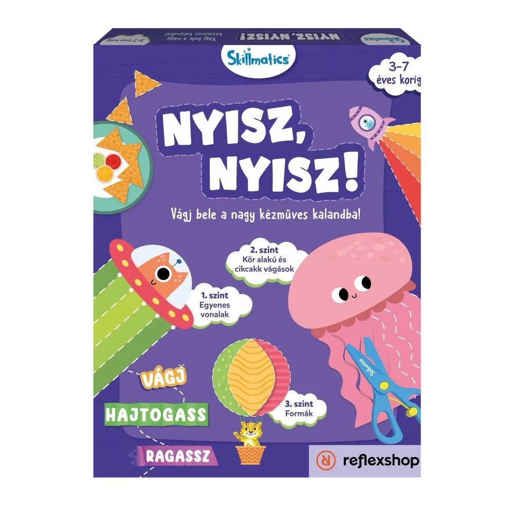 Melyik szülő ne ismerné azt a féltő pillanatot, amikor a kisgyereke először vet szemet a papírvágó ollóra? A Skillmatics Nyisz-nyisz! készlettel ez a fontos fejlődési mérföldkő nem egy izgalmakkal teli kísérlet, hanem egy vidám, sikerélményekkel teli és teljesen biztonságos alkotói folyamat kezdete lesz. Ez a kifejezetten 3 és 7 év közötti gyermekeknek tervezett fejlesztőcsomag játékos formában, lépésről lépésre vezeti be a kicsiket a vágás művészetébe. A dobozban található speciális, gyermekbarát biztonsági olló úgy lett kialakítva, hogy csak a papírt vágja, így a szülők nyugodtan hátradőlhetnek, miközben a kis felfedezők felfedezik saját ügyességüket.