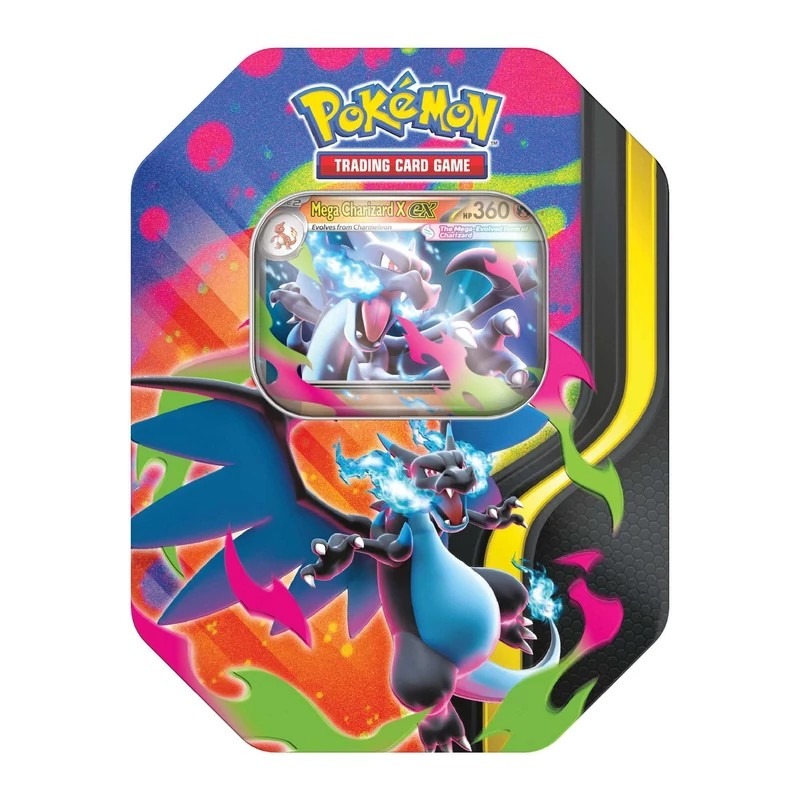 Under the right conditions—including a strong bond with its Trainer—Charizard can surpass its own limits and Mega Evolve! With this tin, you can choose the raging blue flames of Mega Charizard X ex or the aerial agility of Mega Charizard Y ex, and then find even more Pokémon inside a handful of booster packs.The Pokémon TCG: Mega Charizard Tin includes: